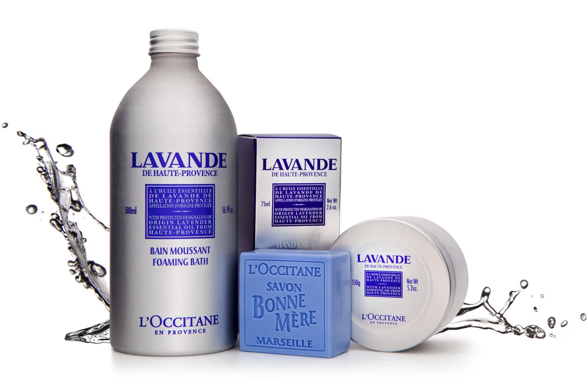 The first image is taken to just demonstrate the highlights on the sides in a way that adds shape to the product, but doesn't distract with any light source or reflection. There is a spot on the background that can be seen through the bottle to add some more depth and color. Each set and lighting scheme is built around the product.